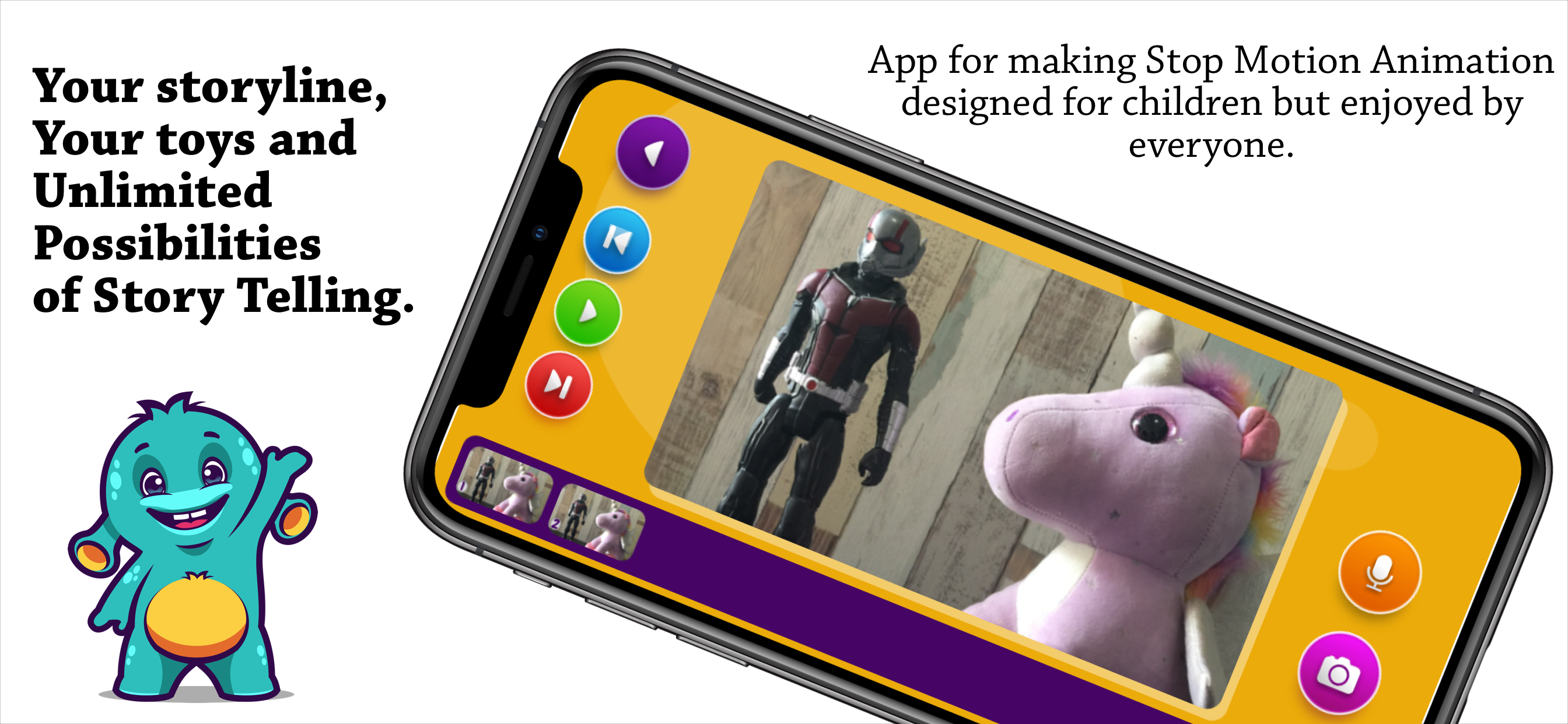 Jefy Make Movie is an app designed for letting kids learn and explore art of story telling using stop motion animation techniques so they can bring their own toys and drawings to life and learn the art of story telling. This app is ideal for children age between 4 to 10.